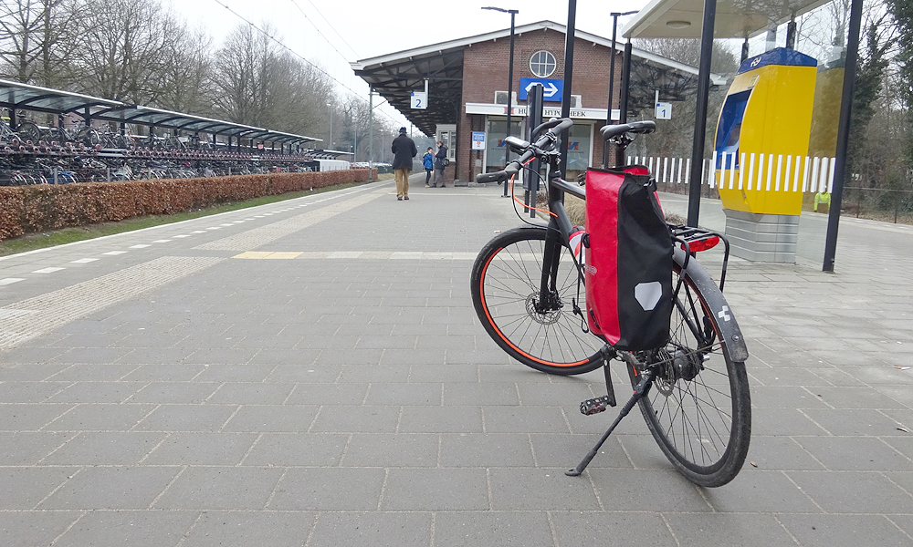 Gisteren heb ik een leuke ronde met S. gefietst hier in de buurt. Vandaag moet ik in Amersfoort zijn voor een afspraak bij de handenkliniek en deze keer ga ik dan toch echt met de trein en terug met de fiets. Het weer is er prima voor, de route is klaar en ik weet hoe ik een kaartje voor de fiets moet kopen. Niks houdt me dus tegen. Alleen ben ik toch een beetje traag op gang en moet me nog haasten ook om op tijd op het station te zijn. De trein vertrekt om 10.43 maar ik moet het kaartje nog kopen en ik weet niet precies waar ik moet zijn natuurlijk. Ik scheur dus te laat weg en race naar het station. Met precies 4 km op de teller sta ik op het perron en kan een kaartje kopen. Ik reed eerst de verkeerde kant op en besefte toen pas dat de ingang van het station daar dus niet was. Maar verder was het heel makkelijk en het perron is op dezelfde hoogte als de weg dus geen gesjouw met de fiets! Ideaal. Het kaartje is verder ook gauw gekocht en ik check mijn OV pas netjes in.