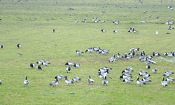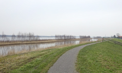 Ik heb voor een ‘makkelijk doorfietsen’ route gekozen en dat is goed te merken. Het is een prima pad en nog mooi ook want al snel rijd ik ineens door de polder. Dit had ik eigenlijk niet verwacht en ik geniet van alle vogels in de velden en op het water. Het tempo is redelijk goed alleen op het smalle hobbelige fietspad bovenlangs de dijk gaat het minder snel. Ook best want ik kijk ook om me heen. Ik had ook over de weg kunnen rijden maar daar had ik de vogels op het water niet kunnen zien.