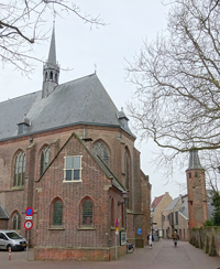 Uiteindelijk kom ik in Harderwijk en volg even de rood/witte bordjes naar Hierden zodat ik niet hoef te zoeken. Daarbij rijd ik ineens echt door het centrum van Harderwijk met de oude kerk en een klooster. Ik stap aanvankelijk af om het oude centrum te gaan bekijken maar besluit toch door te fietsen nu. Ik moet ook terug naar woef en het is nog wel een stukje. Ik maak alleen en kiekje van de kerk maar nog niet eens van de mooie kant.