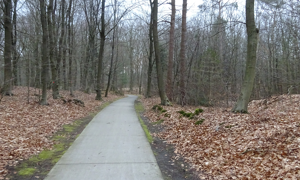 Al snel ben ik bij landgoed Hulshorst en vanaf hier is het helemaal bekend. Ik ben bijna thuis en dat is ook prima want ik wilde eigenlijk gewoon een kort 15 km rondje rijden ofzoiets. Verderop word ik ingehaald door een racefietser. Hij gaat steeds sneller trappen. Even kijken of ik ook op de Santos een beetje sneller kan fietsen en ik zet aan. Dat gaat heel makkelijk maar ik haal hem natuurlijk niet in omdat ik ook te laat bedacht dat ik wel even kon aanhaken (opjagen bedoel ik). Als hij naar rechts afslaat, kijkt hij even om waar ik ben.’niet ver achter je hoor’ Ik moet er wel om lachen maar ben wel blij dat hij weer een andere afslag neemt en ik rechtdoor kan rijden. Hoef ik niet meer zo hard te trappen. Maar ik kan dus best vaart maken op mijn fietsje geloof ik. Overigens rijdt de fiets heerlijk. Ik had zo’n zin om op te stappen en ik ben blij dat ik het gedaan heb ook al zit ik in mijn gewone kleding en jas op de fiets.