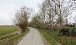 Bij het Veluwemeer sla ik linksaf en rijd langs een aantal vakantieparken. Het fietspad daar is fraai aangelegd en kronkelt door een mooi en open landschap.
