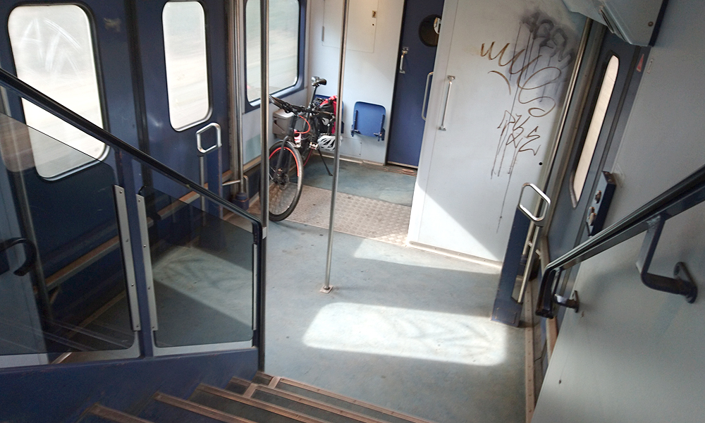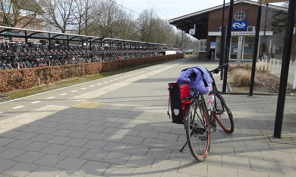 Ik moet me in de ochtend alsnog haasten tot mijn verrassing maar ik ben wel op tijd weg. Op het station check ik in en koop ik een kaartje voor de fiets. Best een dure grap al met al want ik ben totaal 13 euro kwijt voor dit korte stukje met de fiets. Gelukkig is de terugweg gratis en de auto blijft lekker staan. Om 11.13 komt de trein aanrijden en kan ik instappen met mijn fiets. Ik ga het eerste stukje even op een klapstoeltje bovenin zitten omdat ik het huis wil bekijken. Vind ik altijd weer leuk als ik hier lang rijd.
