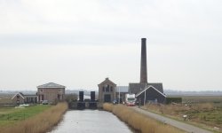 Als ik bij de splitsing kom waar ik eigenlijk rechtsaf moet, sla ik linksaf en volg het bordje (!) naar het stoomgemaal. Even dichterbij kijken dan maar.