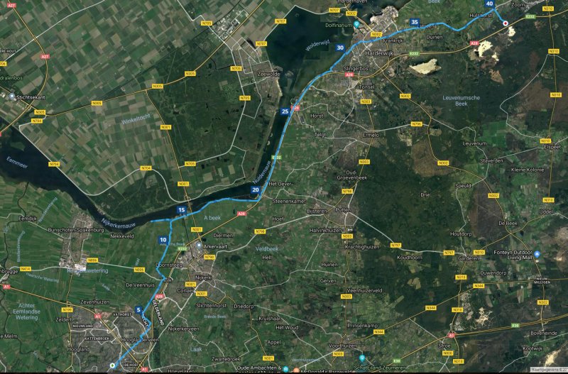 Gelukkig sla ik ergens ook weer linksaf en rijd langs het water richting Harderwijk. Er staan hier een paar hele mooie huizen dichtbij het water van het Veluwemeer. Hoewel er geen bos en weinig groen is, lijkt het best een aardige plek zo. Vorige keer maakte ik een foto van het water maar nu rijd ik door. Ook door Harderwijk fiets ik gewoon door. Ik kan me trouwens nauwelijks voorstellen dat dit de beste route is terug naar huis vanaf daar. Volgende keer eens naar kijken. Ik cross namelijk redelijk dwars dor de stad en kom uiteindelijk bij de Zuiderzeestraatweg uit. Daar rijden we ook met de auto langs. Deze keer fiets ik gewoon lekker door. Ik neem geen afslag door Wierden zoals de vorige keer. Ook hier redelijk wat wind tegen of van opzij. Het waait niet echt hard maar ik merk het wel. Het tempo is op zich goed maar ik moet er wel voor werken.