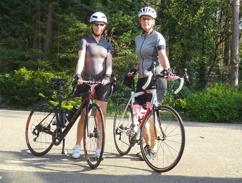 Voordat we vertrekken maak ik een kiekje van ons samen. Dat is meteen de laatste foto want als je snel fietst op de racefiets is een foto maken eigenlijk geen optie voor mij.