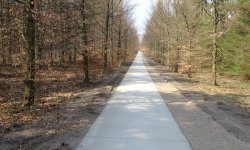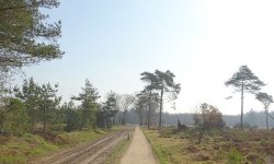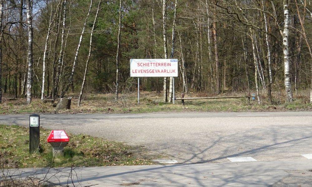 Inmiddels rijd ik door een heel mooi bosrijk gebied. Toch wel weer fijn na de dorpjes en weilanden. Hier kan woef er ook prima af en toe uit en heb ik ook nog wat schaduw want het is nog steeds erg warm. Er staat 55 km op de teller en alles gaat goed tot nu toe. We gaan nu richting Oldebroek en dat voelt al een stuk dichter bij huis! Woef mag er ook ergens weer even uit maar ik probeer tussendoor toch wel wat afstand te overbruggen anders komen we er niet. Als ik bij de schietterreinen ben staat er 60 km op de teller. Eitje toch? Ik vraag me af of ik nou niet gewoon bij dat tentje langs de IJssel had moeten gaan zitten toen ik er langs reed. Ik wilde dat niet omdat ik dacht dat ik anders wel heel erg laat zou zijn. Maar dat is natuurlijk onzin, zeker als je richting huis rijdt en het niet zoveel uitmaakt hoe laat het wordt. Ik had notabene een lichtje voor de doggyride opgeladen en meegenomen voor het geval dat ik in het donker thuis zou komen. En dan moet het dus wel heel laat worden! Maar als de route niet helemaal duidelijk is qua afstand, doe je dat blijkbaar toch niet.