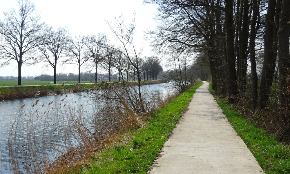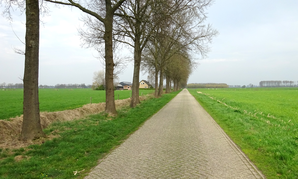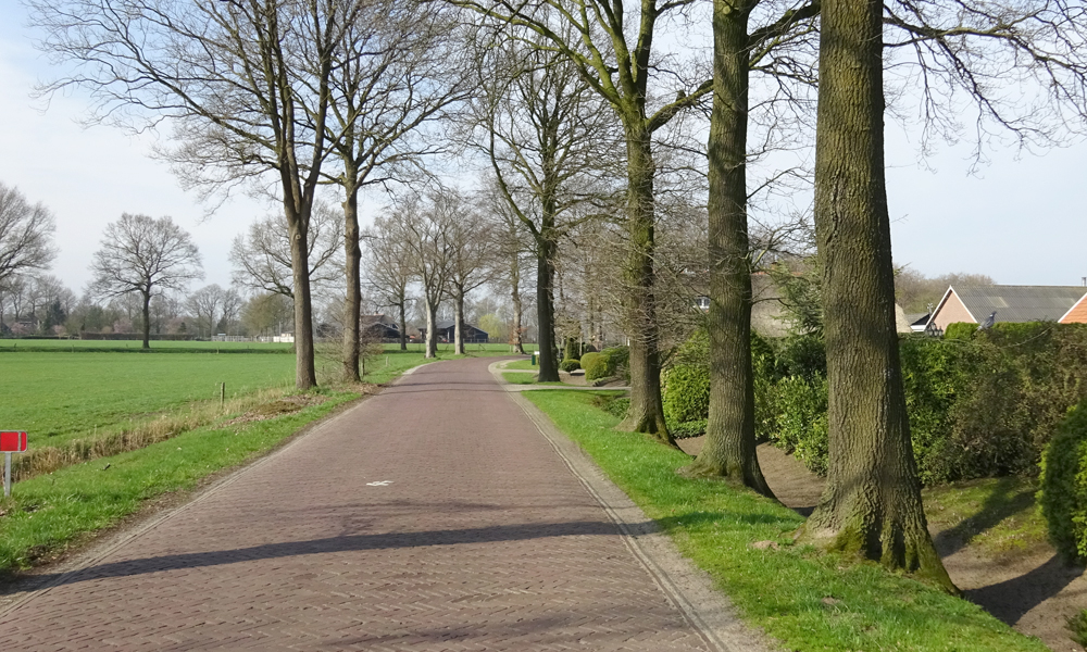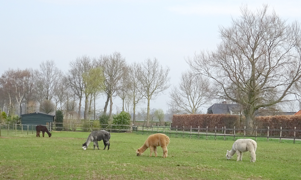 Na het hapje fietsen we weer door. Ik heb even op buienradar gekeken of er nou nog regen komt en ik zie om 13.30 regen in Raalte. Maar dan ben ik inmiddels natuurlijk alweer veel verder dus afwachten maar. Het lijkt overigens een klein buitje dus niks aan de hand. Doorfietsen maar weer. Er is hier eigenlijk niets. Ik fiets door de weilanden en overal staan dieren. Koeien, schapen, geitjes en ook mijn geliefde Alpaca’s zie ik in de weide staan. Verder is er weinig. Ik vang ook best wat wind maar dat is hier nog niet zo erg. Eigenlijk staat er geen wind maar met die open weilanden vang je nu eenmaal overal wind.
