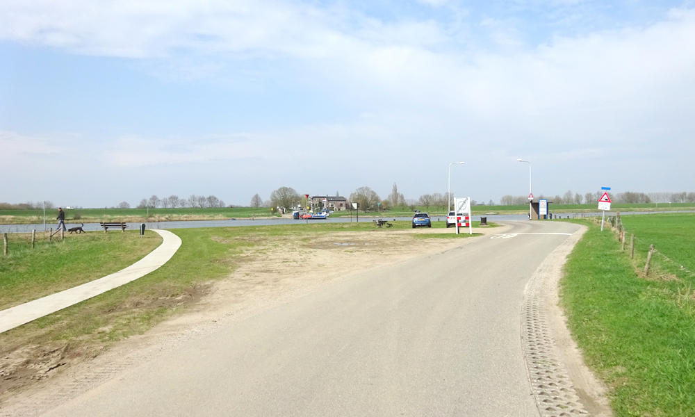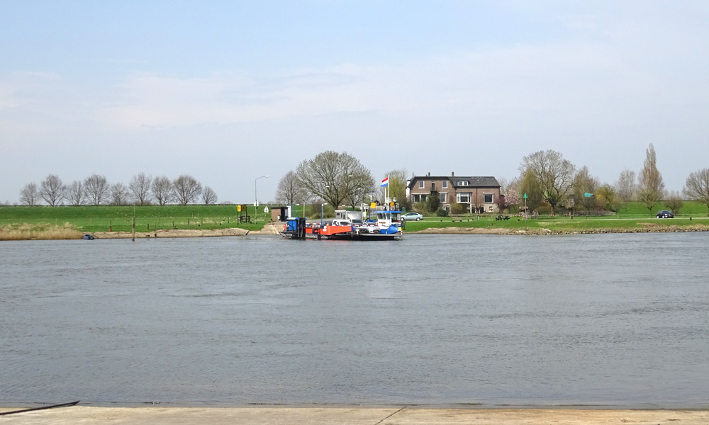 Het hele stuk langs de IJssel is echt prachtig en ik ben blij dat ik die extra lus heb getekend en dat ik me niet heb laten verleiden om de route in te korten. Straks kom ik weer bij een pontje, iets meer noordwaarts dan de pont die ik gisteren genomen heb. Ook nu weer een echte pont voor auto’s en fietsen. Deze keer betaal ik 1.40 in plaats van de 2 euro van gisteren.