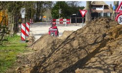 Om 14 uur rij ik Vemden binnen. Ik rijd even verkeerd en moet een weg in waar onduidelijk is of het nu gestremd is verderop of niet. Ik besluit door te rijden en maar te zien waar het schip strandt. Het blijkt inderdaad verderop opengebroken te zijn maar ik kan er wel gewoon langs met de fiets. Ik bindt woefje even vast aan een hekje en duw de kar langs de opbreking en haal woef daarna ook weer op. Ook weer gelukt.