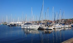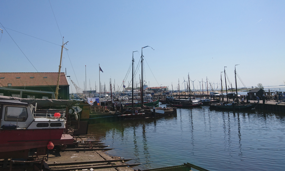 Ik maak een foto van de haven en stuur die naar S. thuis en zeg dat ik naar de start ga fietsen. Daar ben ik snel en schrijf ik me in. Ik hoor dat de route 10 km korter is en ik gok er dus op dat de route ongeveer 70 km zal worden en geen 60 zoals ze voorspiegelen (dat blijkt ook te kloppen). Al snel ben ik op pad en rijd over de hobbelige klinkerweggetjes Urk weer uit.