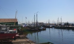 Deze keer neem ik – in tegenstelling tot vorige week – een broodje Nutella mee voor onderweg en zal ik ook goed drinken. Het is echt een hele warme dag en ik rijd dus met korte mouwen en een korte broek. Als ik naar de NO polder rijd, zie ik al bordjes langs de paden staan. Later zal ik ontdekken dat dit de bordjes zijn voor de bollen wandelroute die ook georganiseerd wordt door de VVV maar onderweg zie ik dus al bollenvelden. Prachtige kleuren en alles staat er mooi bij. Ik zie ook al fietsers dus wellicht rijd ik hier straks ook langs. Ik koos voor de start in Urk en niet in Marknesse. Urk lijkt me leuker dan Marknesse. Al snel rijd ik het dorpje binnen aan de kant van de dijk en word met borden naar de parkeerplaats bij de haven geleid. Daar stap ik uit en maak me klaar voor de rit. Fietsje van het dak, schoenen aan en kleding wisselen. Er komt iemand van de organisatie vertellen waar ik heen moet voor de start dus het is allemaal goed geregeld. Druk is het niet maar ik ben ook vrij laat want je kon vanaf 8 uur starten en het is inmiddels 9.30 uur.