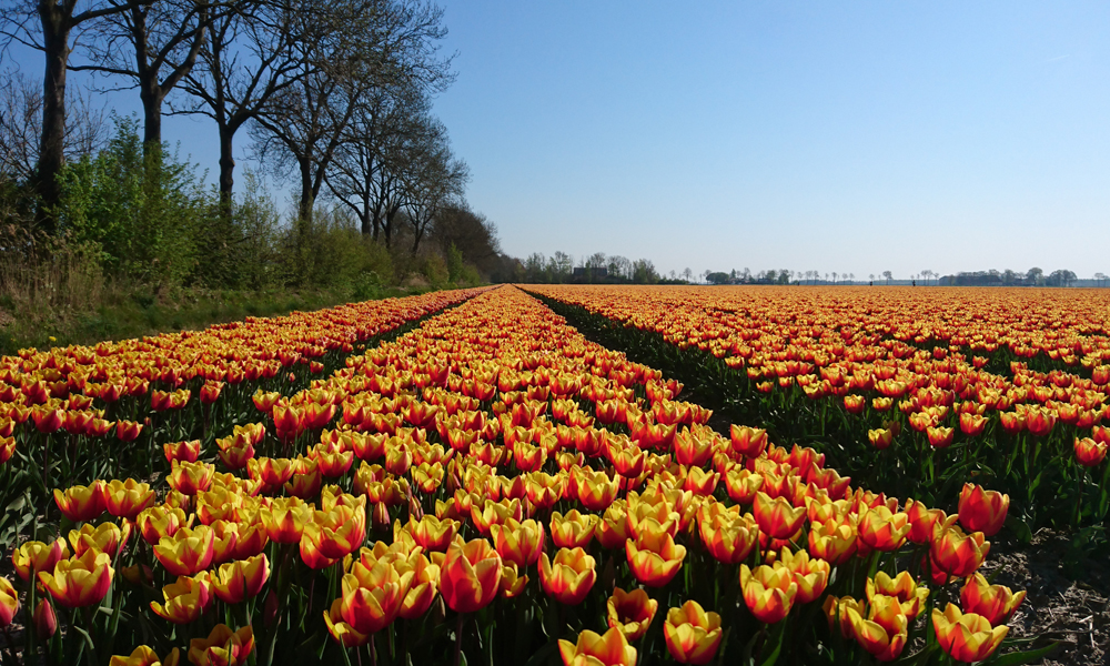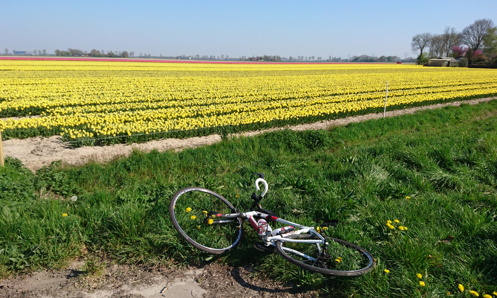 Vandaag fietsen we niet met de honden omdat het morgen heel erg hard gaat regenen. Daarom vertrek ik voor een rondje in Urk langs de bollen. Het is voor de eerste keer dat ik naar de bollen in de NO Polder ga en ik ben erg benieuwd. Tijdens een van mijn eerste racefiets rondjes kwam ik per ongeluk in de bollenvelden terecht doordat ik de splitsing miste op mijn tocht van de Waardrenners. dat was toen wel een grap maar een enorm eind. Maar zonder die afslag had ik die hele velden niet gezien dus kwam het mooi uit. Nu gaat ook de kortste route van de tocht langs de bollenvelden. Er kan gekozen worden uit 70, 105 en 130 kilometer maar voor vandaag is die 70 km echt genoeg want volgens afstandmeten komt de route op 76 km.