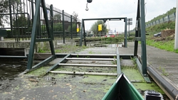 Daarna komen we bij het eerste echte obstakel, een boothelling. Ik kende dat wel van plaatjes maar S. had het nog nooit gezien. Best handig maar ik snap niet waarom we niet gewoon door kunnen varen eerlijk gezegd.