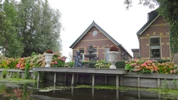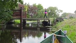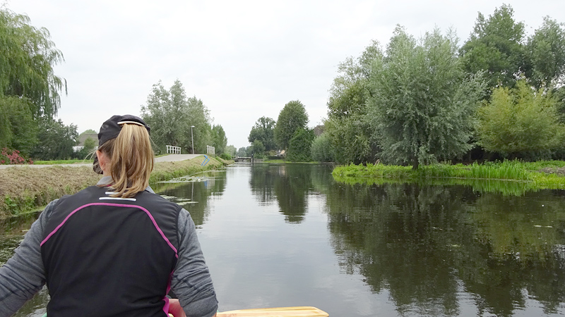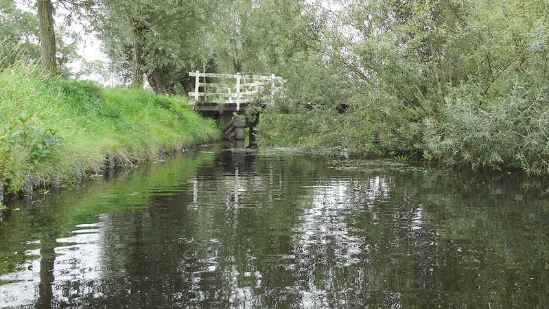 Na de doorgang slaan we linksaf en varen we weer de richting op waar we heen moeten. Nu komen we in een gebied met boerderijen en huizen maar ook met veel lage bruggetjes helaas.