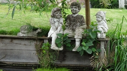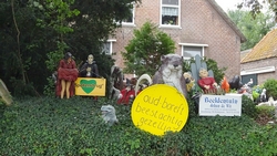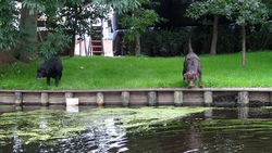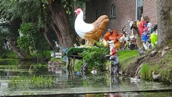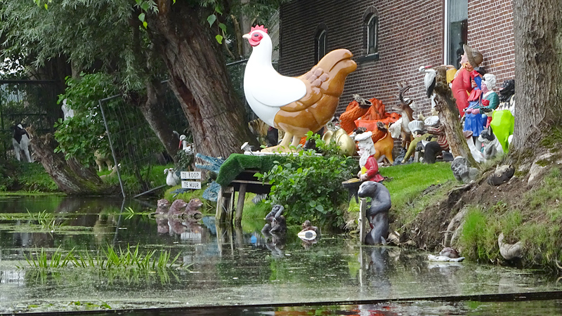De route schiet inmiddels wel op en we komen bij Bodegraven waar rechts van ons een boerderij is met allerlei dieren en beelden die te koop zijn. Echt zo afschuwelijk lelijk. We zagen ze al eerder toen we in de auto naar Alpen ad Rijn reden. Nu varen we er dus vlak langs. Je zou er zo eentje in de boot kunnen laden als je zou willen.