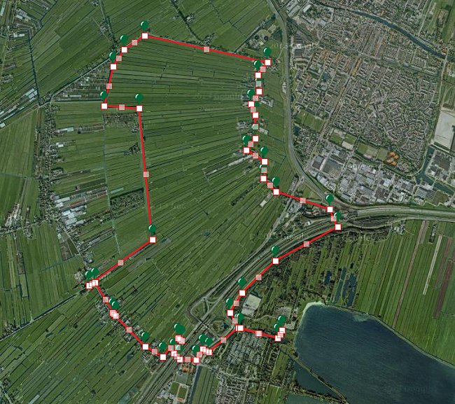 Dan varen we nog anderhalve kilometer langs de A12. Wat een herrie en wat een drukte. Je zou kunnen zeggen dat de route ‘afwisselend’ was maar we vonden er weinig aan. Dit is notabene een ‘echte’ route maar slecht onderhouden en bovendien totaal niet aantrekkelijk. Hoe ze dit bedacht hebben, is ons niet duidelijk. Maar goed, uiteindelijk varen we weer naar de Reeuwijkse plassen en daar is het rustig. Een volgende keer gaan we toch maar daar een stukje varen en kopen we de ontheffing die nodig is.