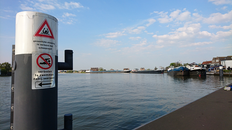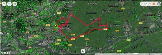 Maar uiteindelijk kunnen we weer verder. Even 1.7 km langs de IJssel en dan slaan we linksaf richting Breeka. Deze keer zie ik onze snelheid en de afstand tot de afslag op de navigatie op het stuur. Tot nu toe werkt dat allemaal prima.