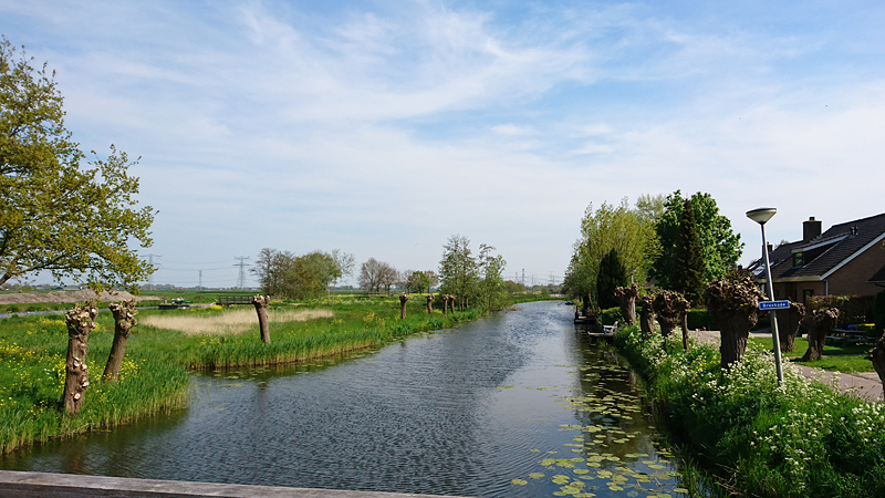 Als ik na dit intermezzo op de navigatie tuur, zie ik dat we niet terug hoeven fietsen maar door kunnen blijven rijden op de weg langs de mooie huizen en dan weer rechts af kunnen slaan. Dat is toch wel handig op deze manier en de weg die we nu rijden is prachtig met mooie boerderijen en huizen. Genoeg te zien dus! Ook zien we voor het eerst fuutjes met jonkies.
