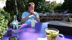 S. heeft zich alleen te pletter gefietst op dat laatste stukje en de koek is op. Toch wel iets om rekening mee te houden en misschien is het een goed idee om in een van de bidons toch een sportdrankje te doen. Veel hebben we vandaag niet gegeten en S. is niet gewend aan activiteit zonder eten en ik wel (door het lopen). Ook moeten we dus gewoon op de rit straks de kar onderweg ruilen zodat we ieder steeds een stukje lekker kunnen fietsen.