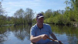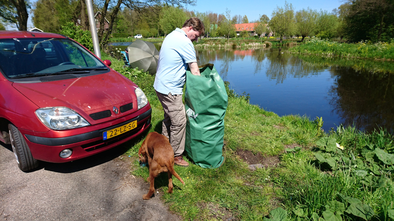 Al snel zijn we klaar om te vertrekken maar we waren vrij laat op gang vandaag en we zitten dus pas vrij laat op het water. Opbouwen gaat niet helemaal soepel, misschien ook doordat een van de boegstangen nog steeds geen nieuwe veer heeft. Ook plakken we nog een stukje van het zwarte schuim weer aan elkaar. Geen idee hoe de vorige eigenaar dat zo kapot heeft gekregen. Het maakt verder overigens niets uit voor de boot zelf.