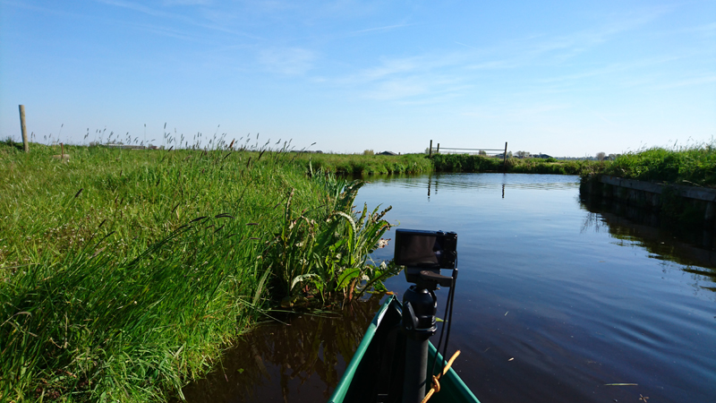 We laten ook de drone op vanaf een van de bruggetjes. Zo hebben we eindelijk weer een video van ons in de boot (video volgt).