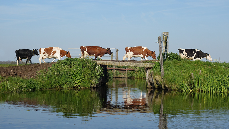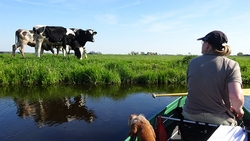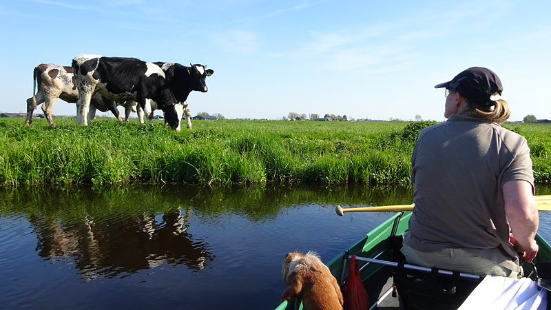 Gelukkig staan er koeien in de wei en dat is zo leuk vanaf het water. Je bent wat lager dan de koetjes en bovendien heel dichtbij!