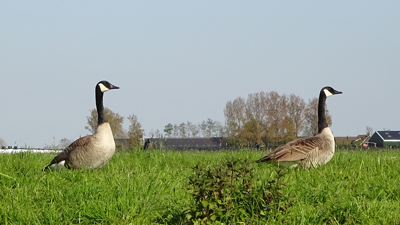 Maar er zijn natuurlijk ook watervogels. We zagen al kleine meerkoetjes maar we zien ook canadese ganzen.