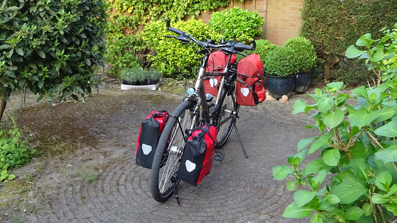 We besluiten alsnog de ortlieb rack pack aan te schaffen die ik in de aanbieding gevonden had en ik bestel in de UK een klein tasje voor op het frame waar de telefoon in kan en mijn camera.
