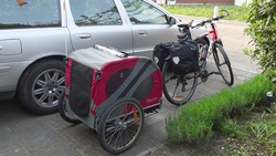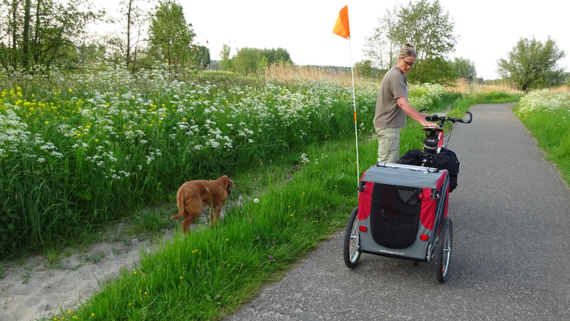 Als we thuiskomen, blijkt de doggyride raar heen en weer te zwaaien. Wat is daar nou weer mee? Nog even nakijken dus en ook moet ik de derailleur even laten stellen. Morgen!